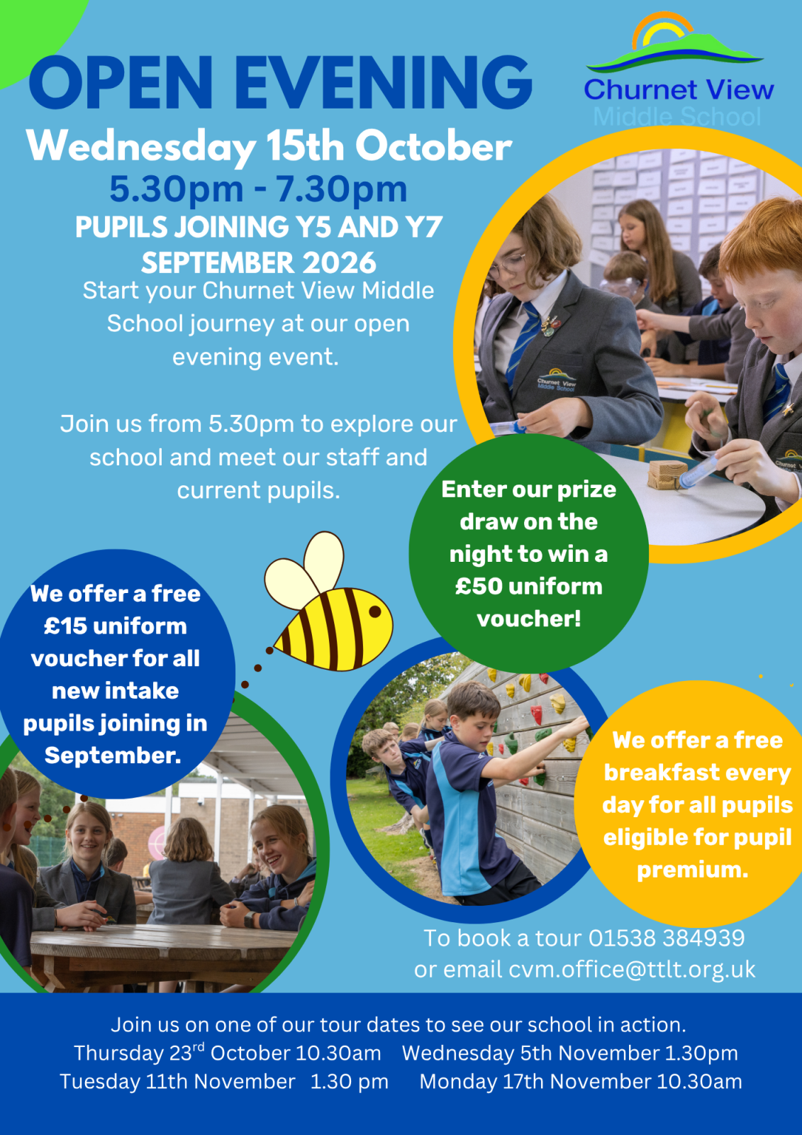 Welcome to Churnet View Middle School. We understand that choosing the next school in your Child’s journey is an incredibly important decision for you and your family to make. We want you to see for yourselves how hard we work to give children, families and the community we serve, our very best endeavours. We are part of the Talentum Learning Trust consisting of Churnet View Middle School, Leek High School, and six local first schools. The Trust mission is, “To support and enable all of our learners to believe in themselves, to succeed in life and to aspire to be all that they can be.” We embrace this within all that we offer. What about the school’s mission/vision?